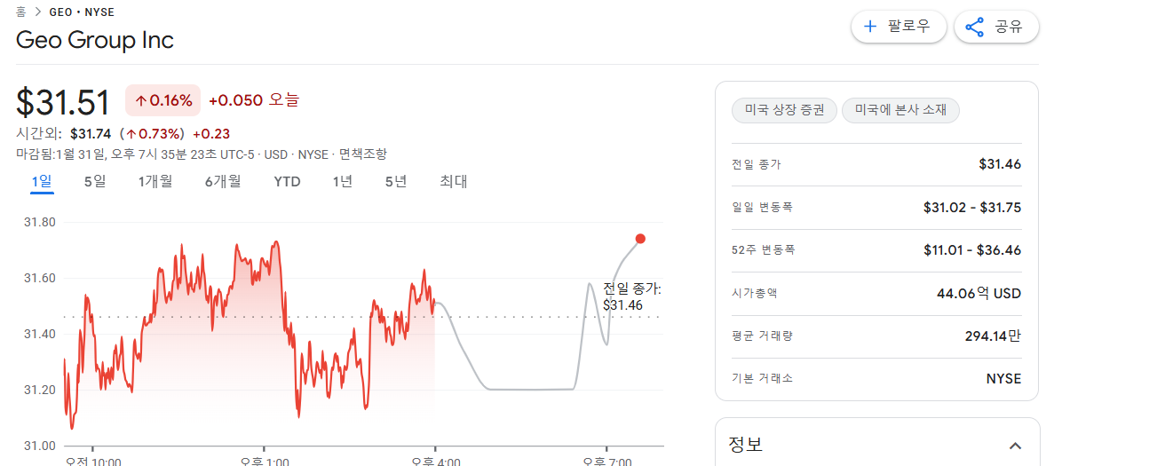 민간사설 교도소 기업입니다. 당선되고 42%상승하였습니다.